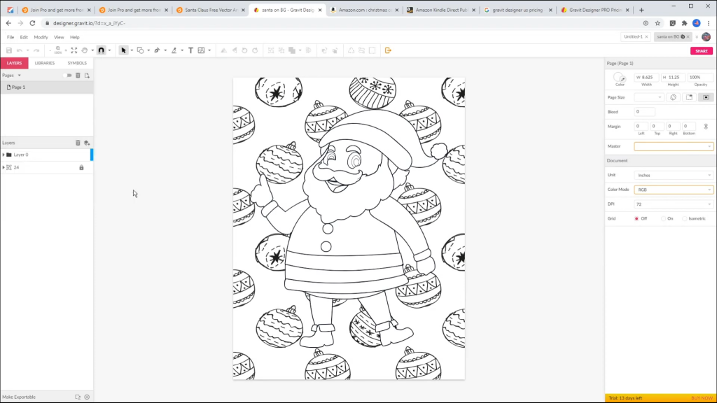 In this article I’m going to show you how to create an interior page of a Christmas coloring book using free online software for Amazon KDP.