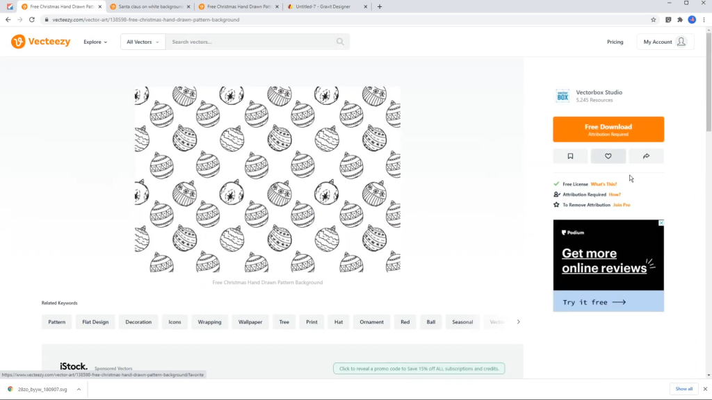 If you search any keyword You can find many result for in this website, make sure that the images you choose would be appropriate for using in coloring books and remember they should all be converted into black and white images in your vector software. Since I’m going to create a Santa Claus on a Christmas background so I’m going to search for Christmas background and then look through the results.