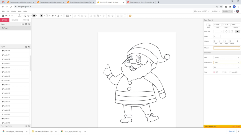 Do the same thing for the Santa Claus, so just go back to Vecteezy and search for Santa Claus and download your favorite image. if you downloaded image is not SVG , you need to convert it into SVG, for that now this is very easily done so just go to google and search eps to SVG and you will get tons of websites I usually use convertio.co it’s quick and really easy to use we’ve chosen to convert an eps file into an SVG file so click on here to locate our file and just click on convert which will take a couple of seconds, when you download the result since it’s SVG you just need to drag to our page.